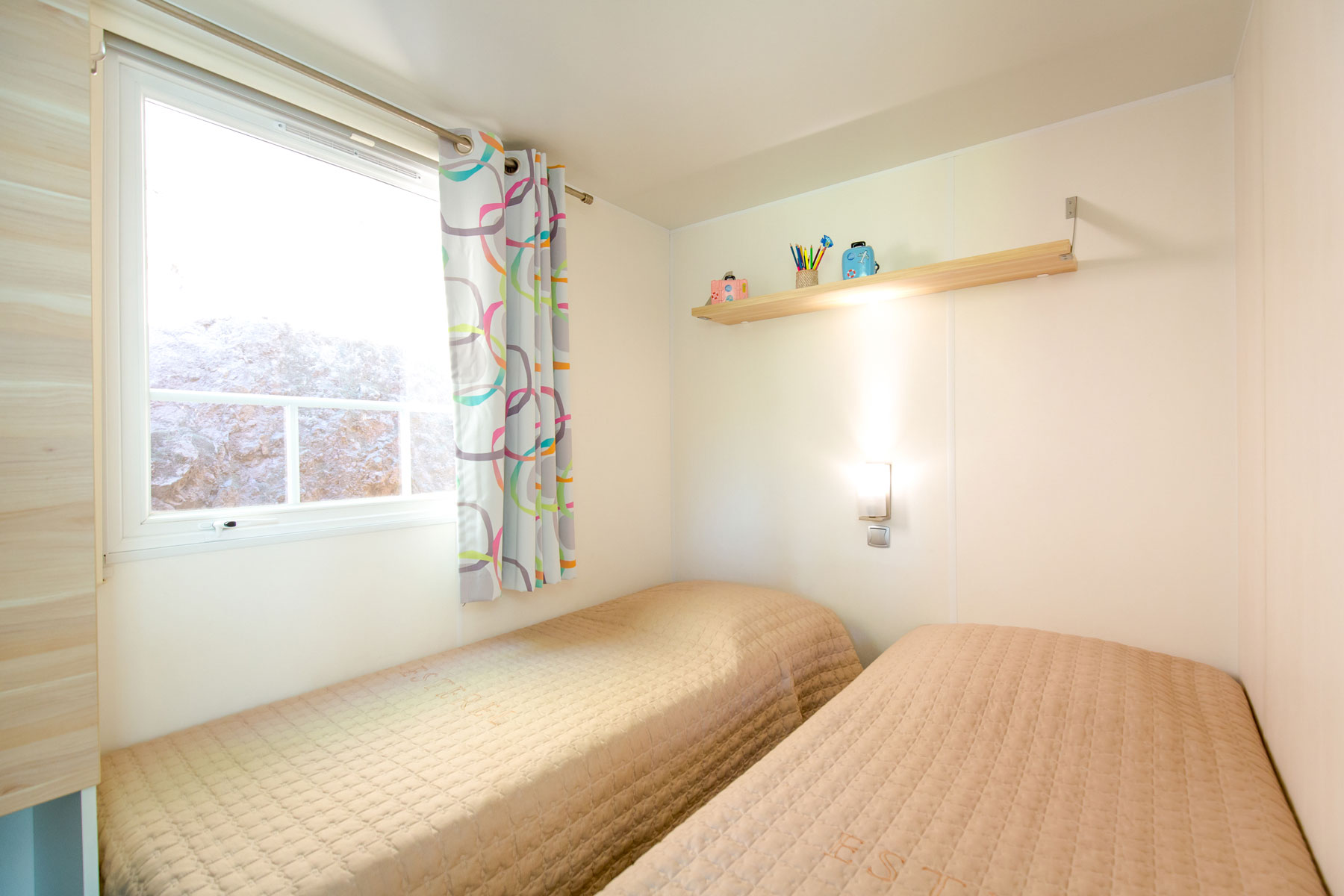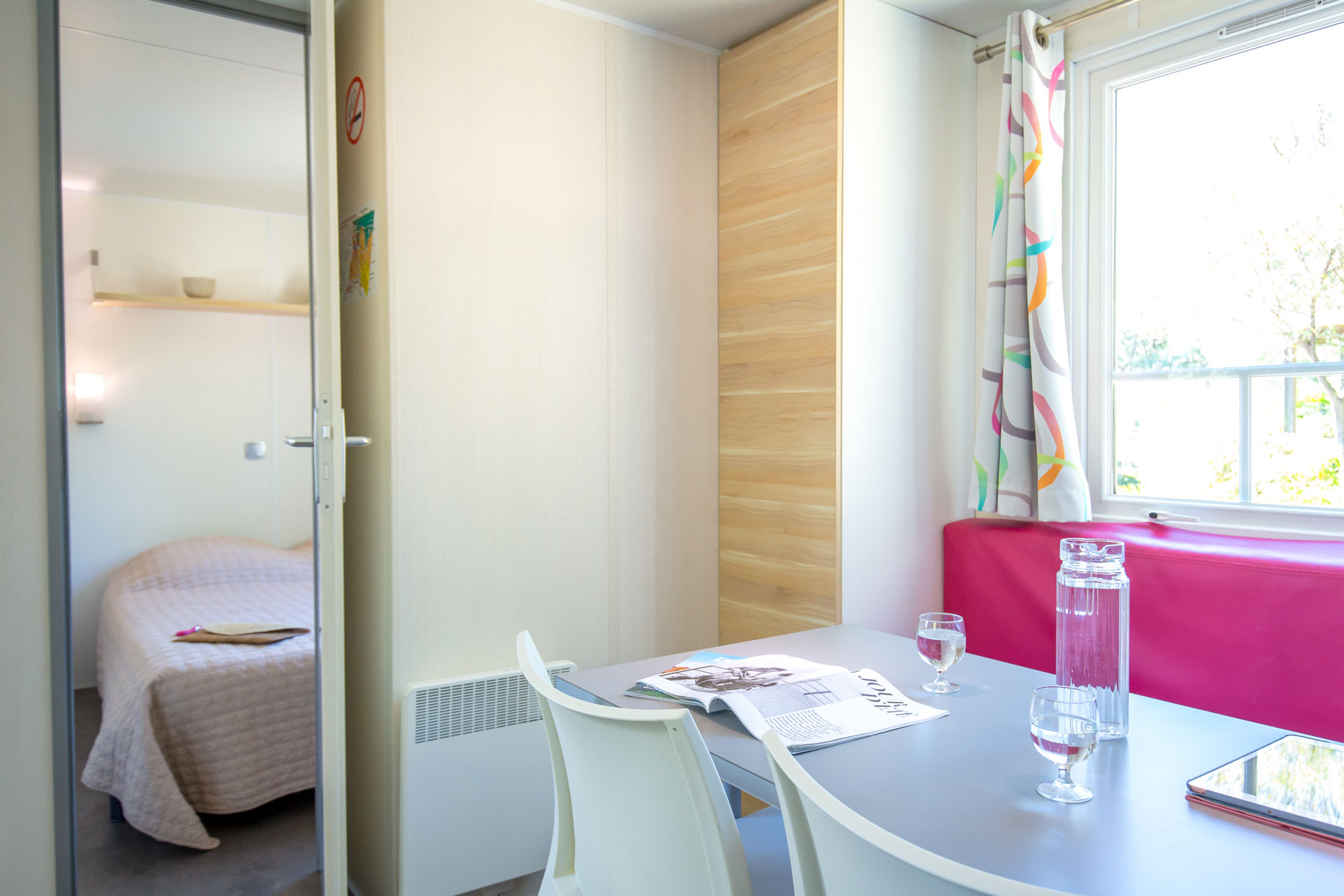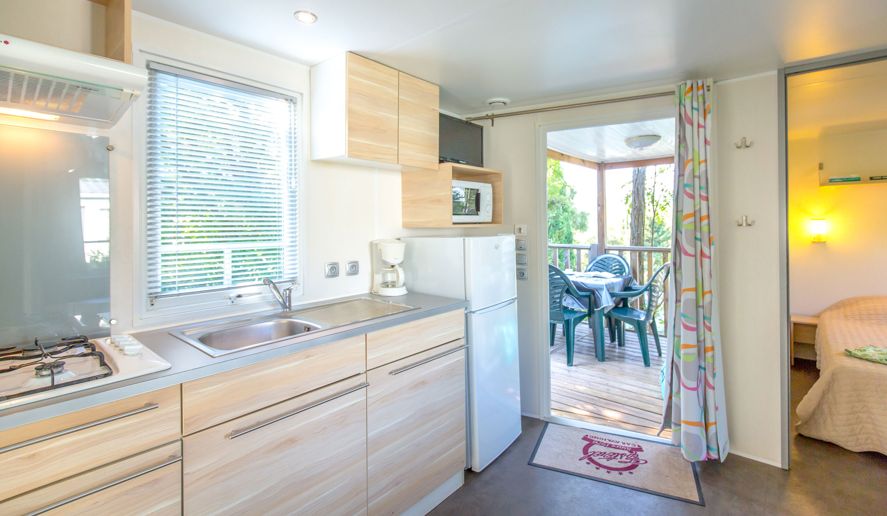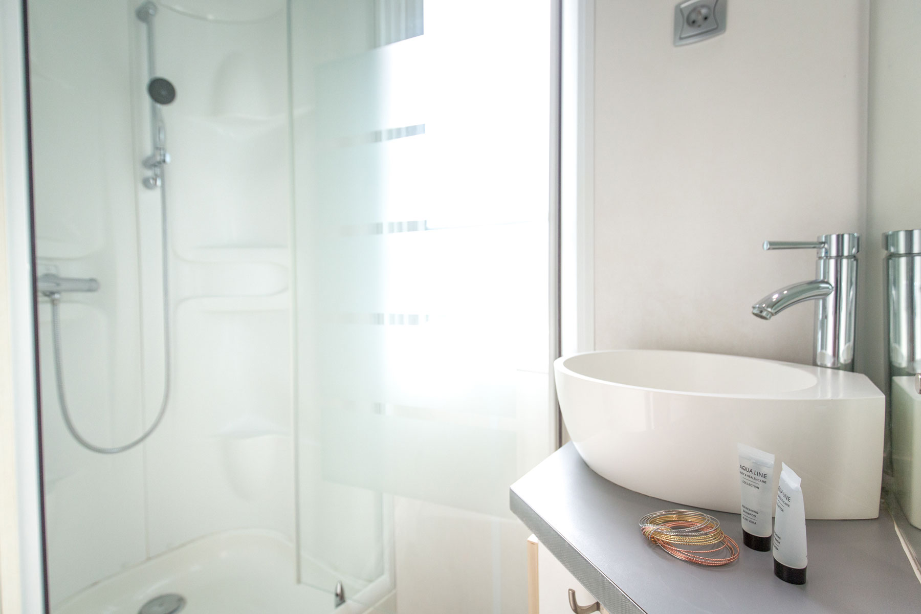 Vous nous l’avez demandé ! Car vous aimez déjà le Bastidon 4, ce modèle de mobil-home compact éco conçu avec terrasse mi-couverte intégrée pour une famille avec deux enfants et nous avez suggéré de lui donner un coup de pouce. Toujours à votre écoute, le Bastidon 4 Confort vous ouvre ses portes et vous offre encore plus de bien-être pour vos vacances sur la Côte d’Azur : il s’équipe de la climatisation et de la télévision. Vous profiterez ainsi tout au long de la saison du paysage merveilleux qui vous entoure et d’un écrin douillet en intérieur.