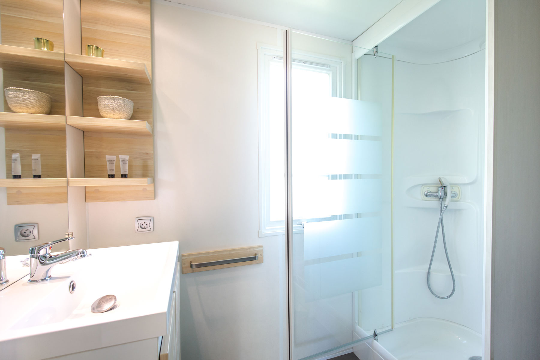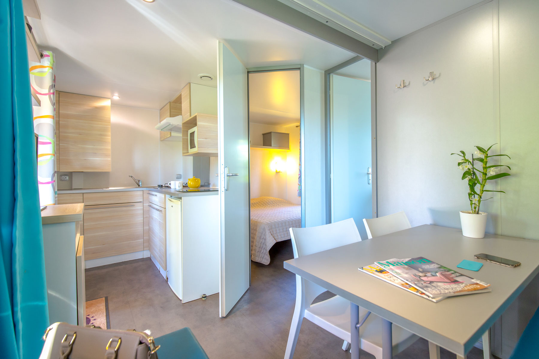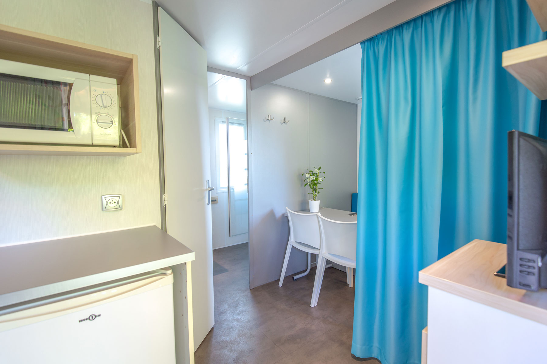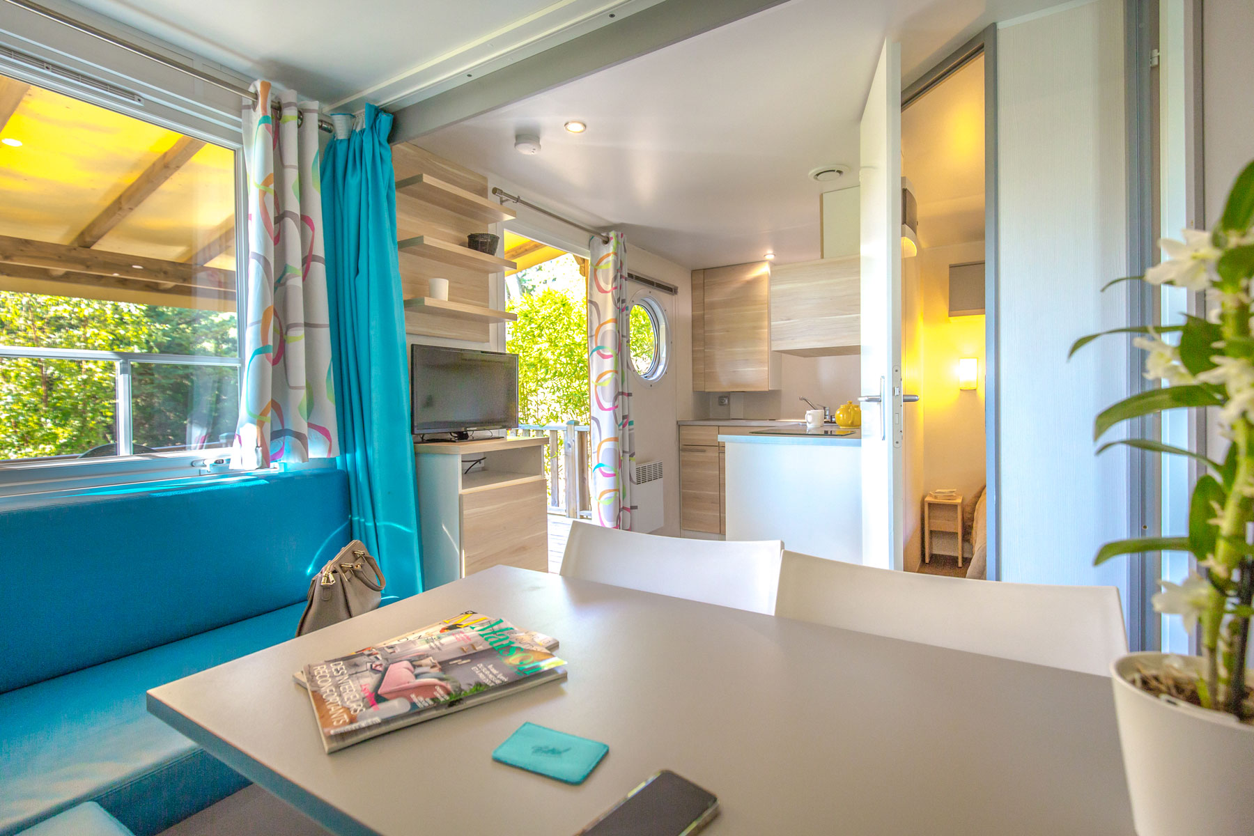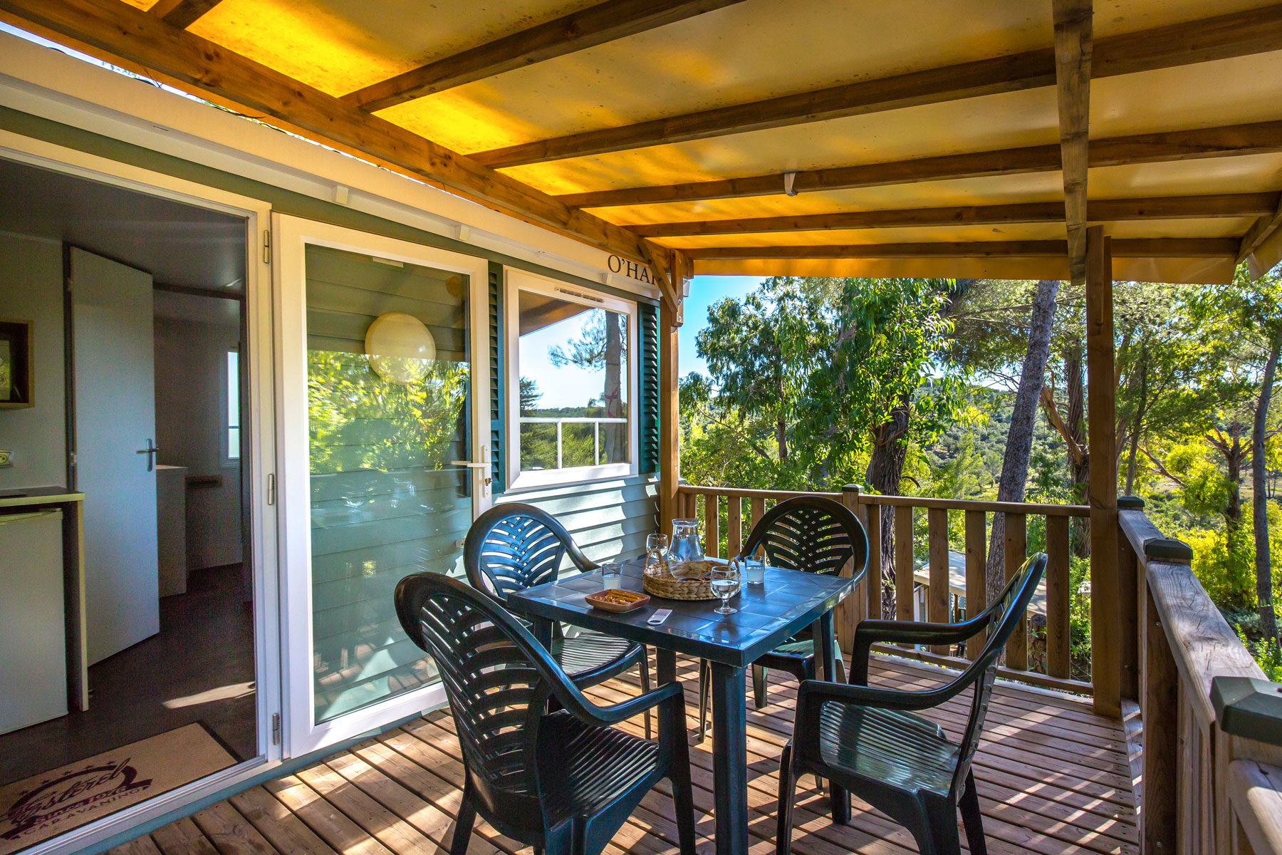 Mini Suite Confort : Evolution de la traditionnelle Mini Suite, au cœur de la végétation de l’Esterel, cette location de charme pour des vacances en Amoureux ou pour un week-end prolongé sur la Côte d’Azur se dote de la climatisation et de la télévision ! Après l’avoir essayé, vous ne pourrez plus partir en vacances en camping autrement qu’en mobil-home !