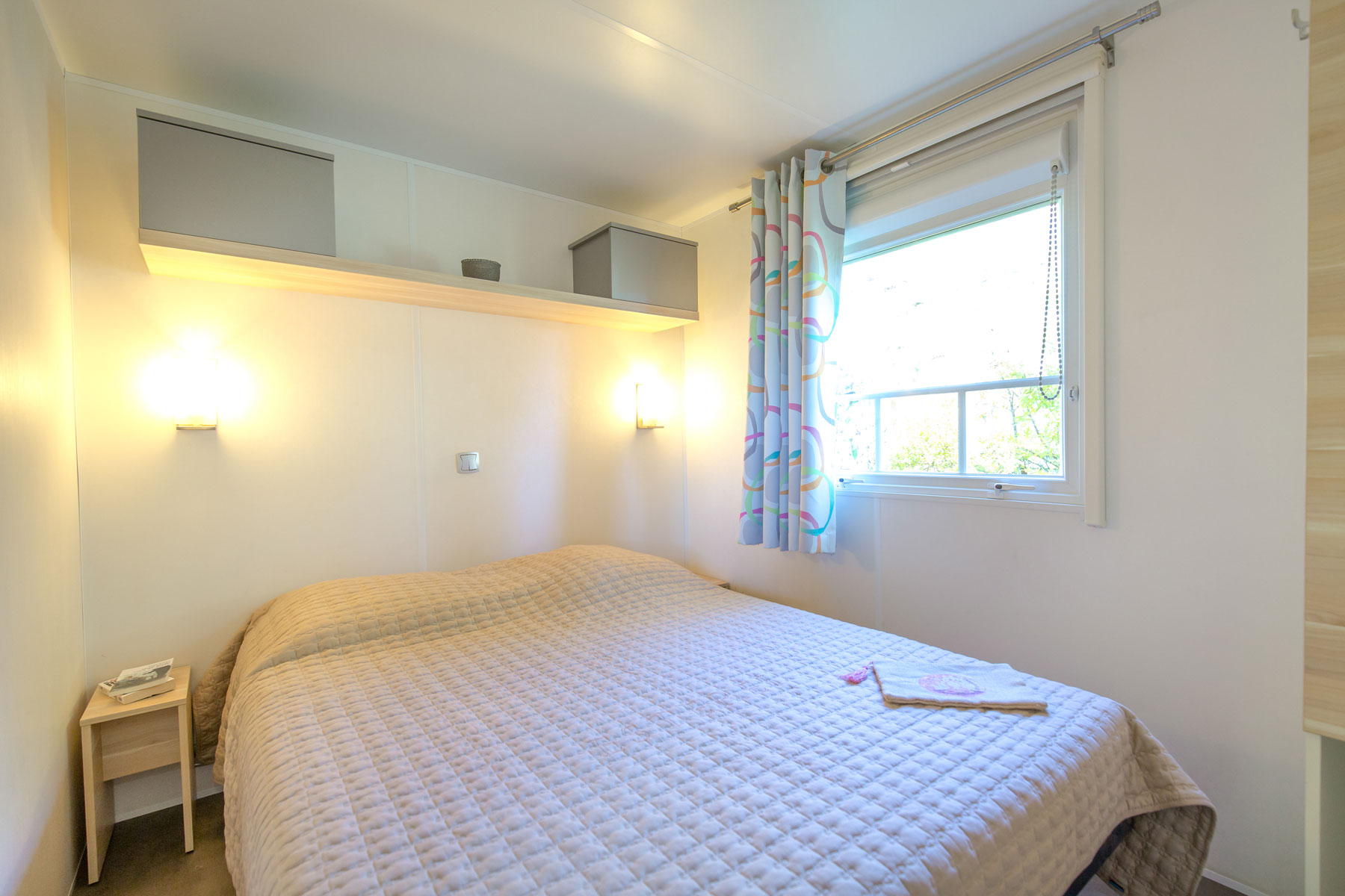 • Chambre avec lit double (lit 140 x 190 cm) • Salon convertible • Climatisation • Télévision • Salle d’eau et WC séparé • Terrasse couverte • Salon de jardin • Bains de soleil • Stationnement pour une voiture
