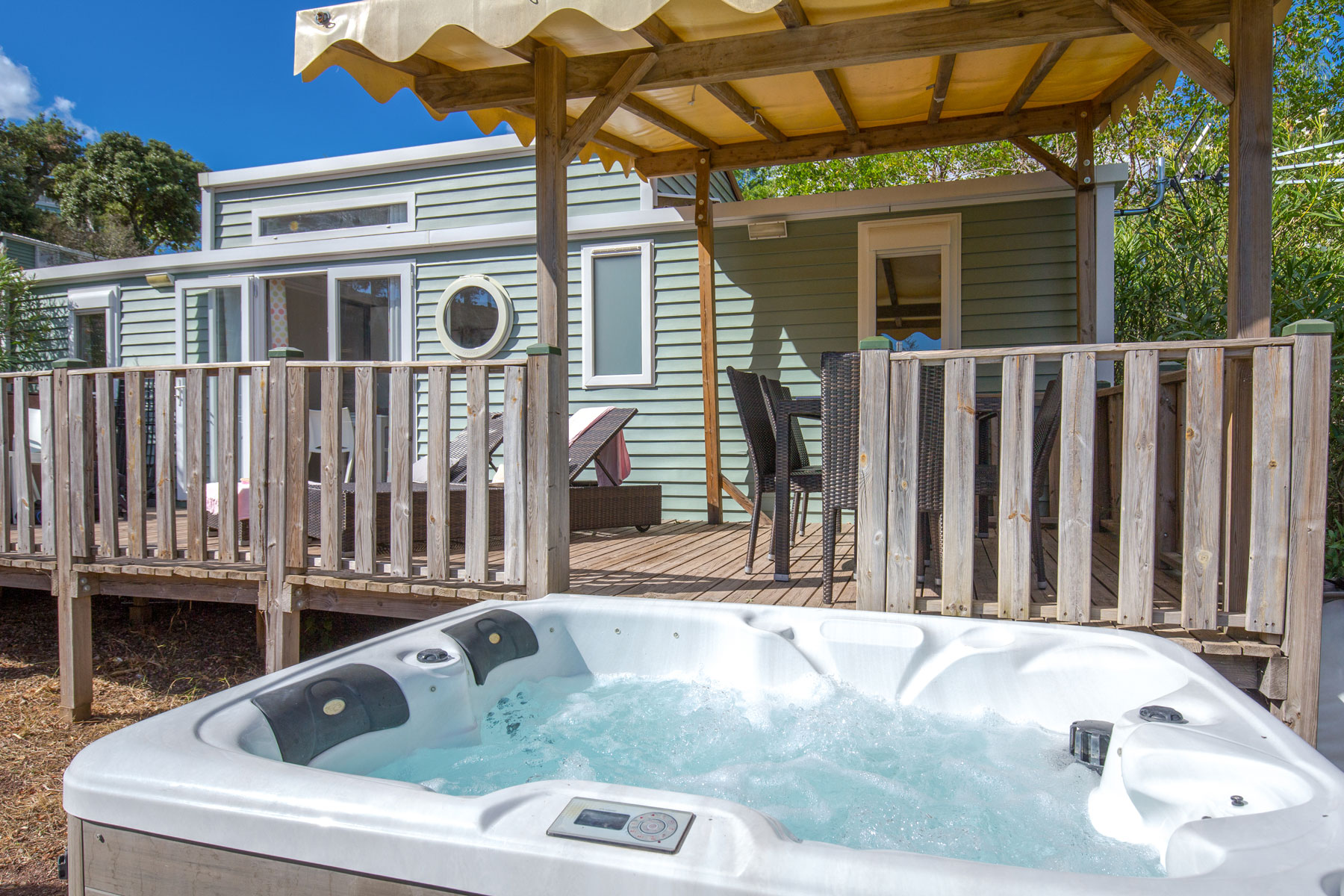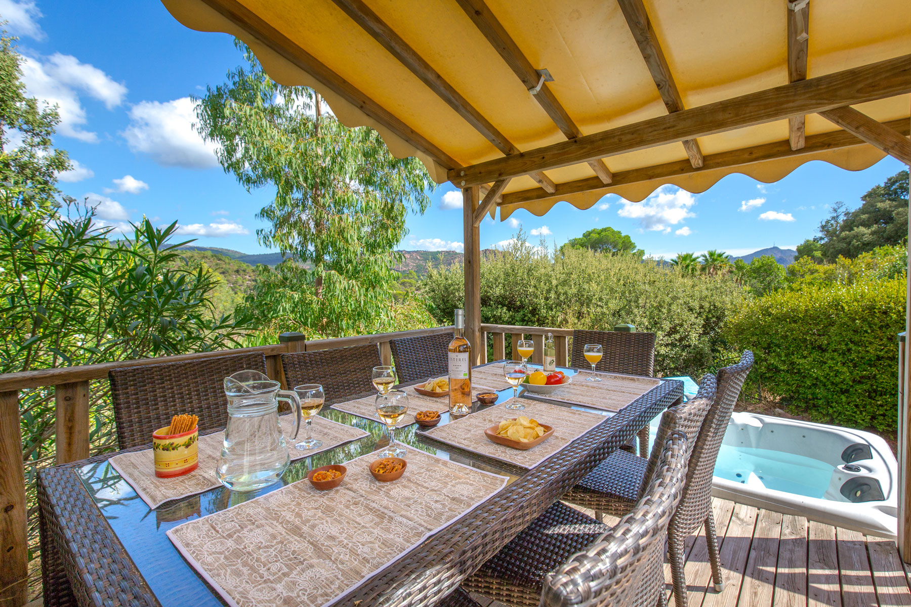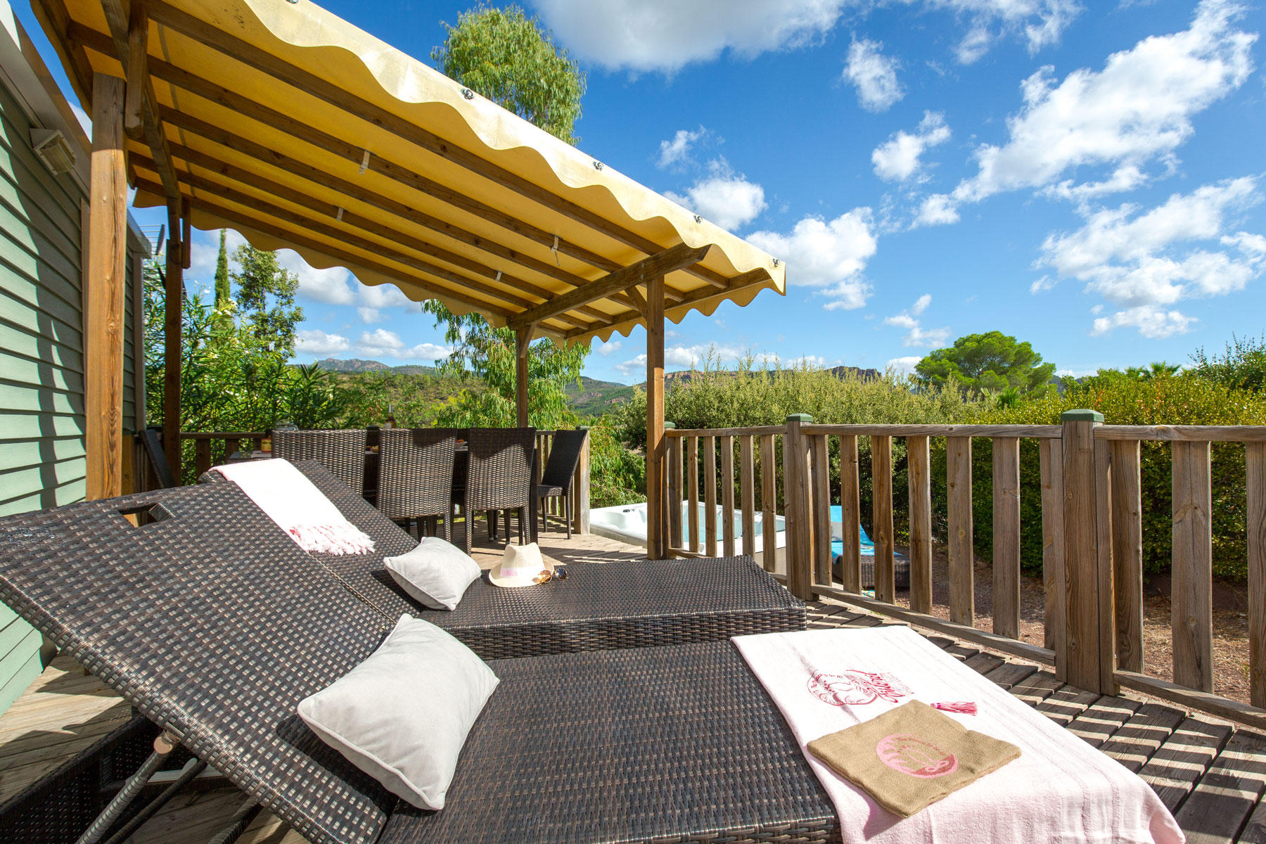 C’est un mobile home conçu pour des vacances exceptionnelles, avec une vue panoramique sur les roches rouges et le massif de l’Esterel :