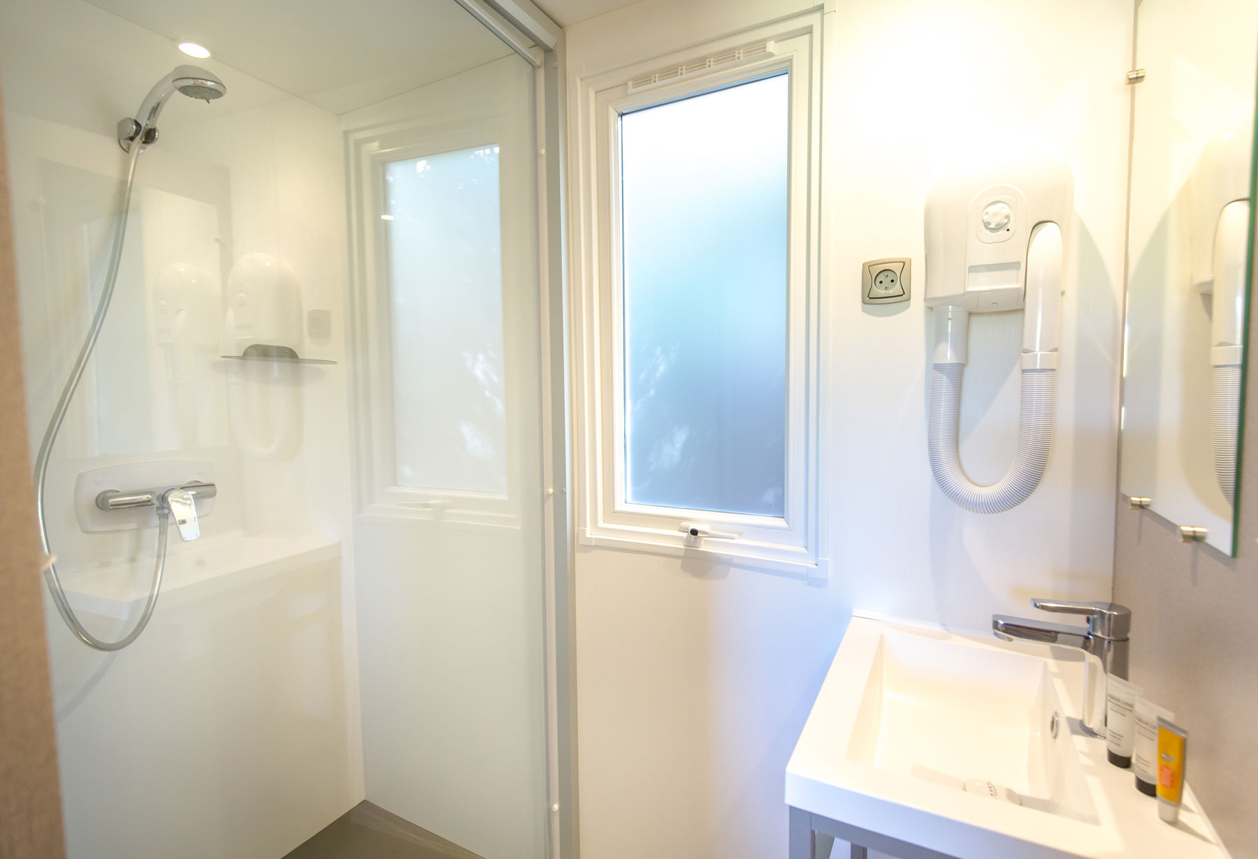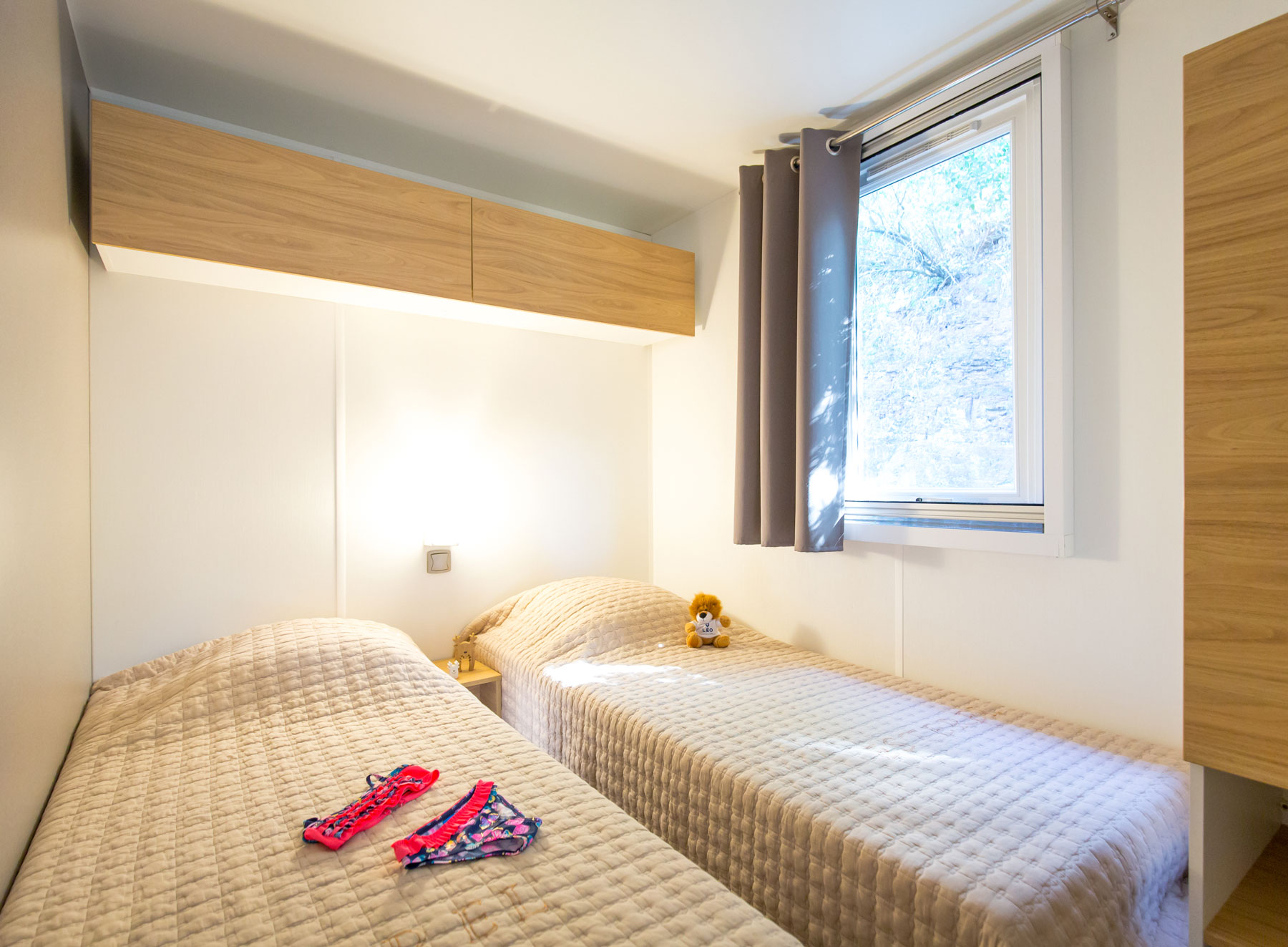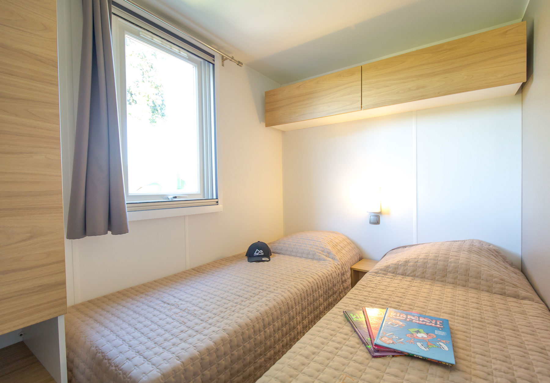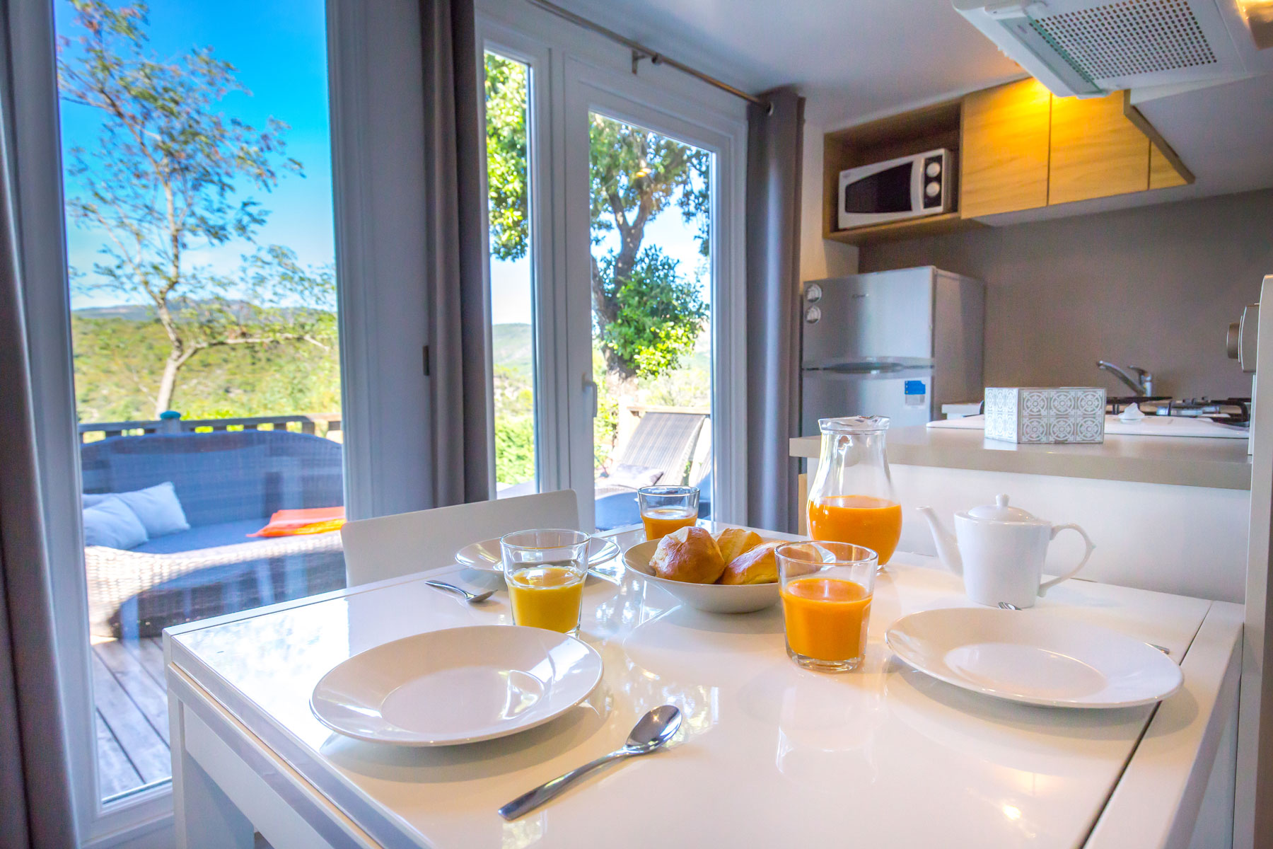 Le mobile home Premium est ultra moderne, spacieux, chic et lumineux. Du haut de gamme pour des vacances exceptionnelles en famille ou entre amis. L’intérieur, au design contemporain, avec son salon central et son espace repas séparé lui procurent un confort indiscutable, qu’une grande famille appréciera.