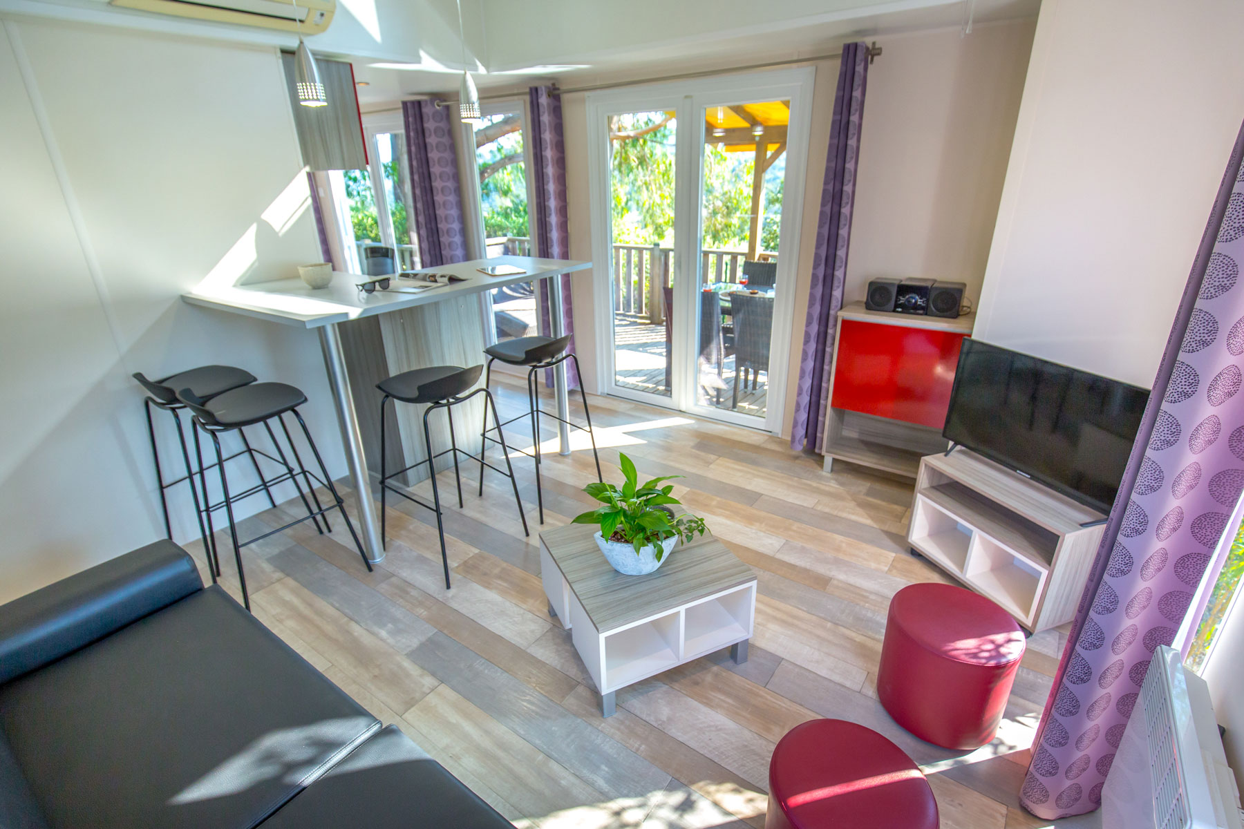 Au camping Esterel Caravaning, il vous est possible de siroter un cocktail dans votre bain à remous privatif sur la terrasse de votre mobile home, en admirant le coucher de soleil sur le massif de l’Esterel. Poursuivez la soirée avec un dîner romantique dans l’un de nos 2 restaurants à la décoration raffinée et pourquoi pas continuer la soirée à la discothèque du camping, entièrement redécorée cette année.