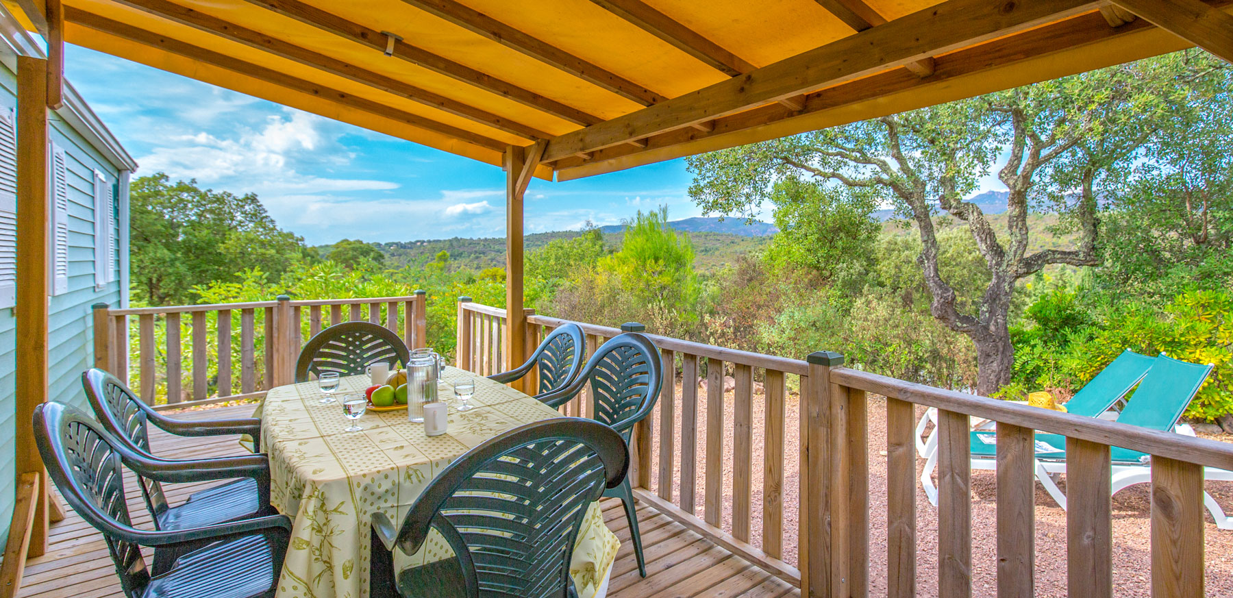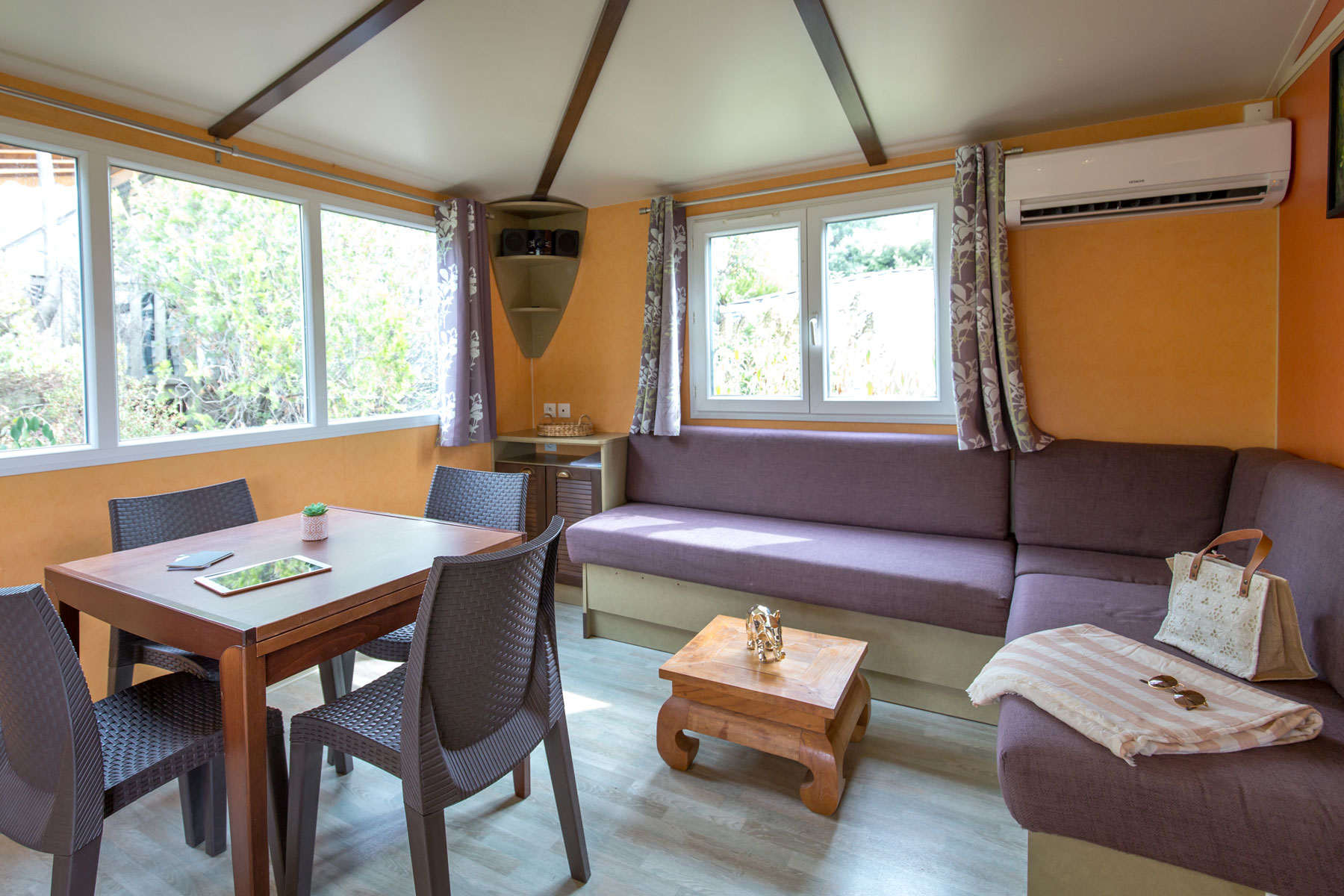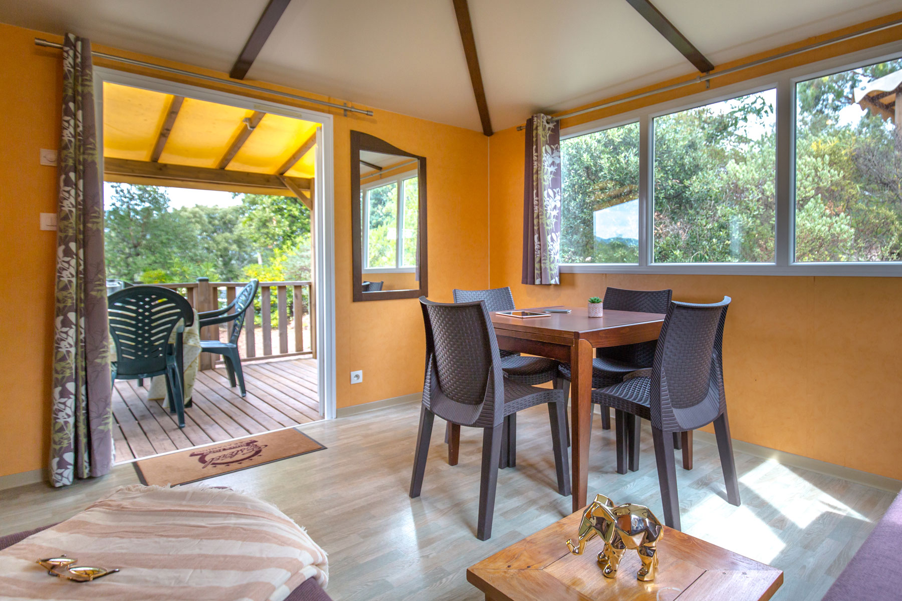 Découvrez les photos des mobile Home Suite : votre Suite en mobile-home, avec une superficie de 33 m² avec une vue unique sur la nature.